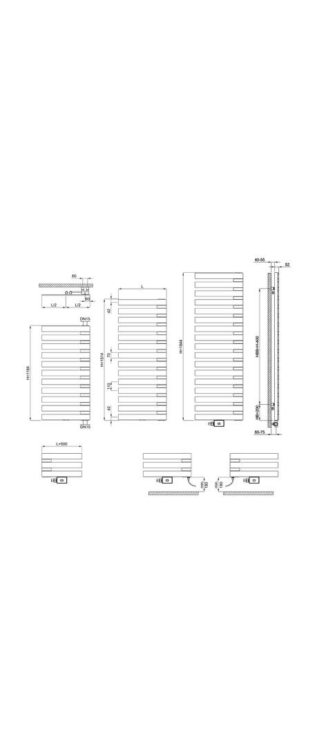 für den Zentralheizungsbetrieb (zusätzliche Ausstattung mit Elektroheizstab), gerade horizontale Paneelovalrohre 70 x 11 mm im Spezialschweißverfahren, vertikale Quadratrohre 40 x 40 mm wasserführend verbunden, durchgehend regelmäßig angeordnete Horizontalrohre für das seitliche Einhängen von Handtüchern und Textilien, vertikale Sammelrohre im Abstand von 50 mm rechts außen, Horizontalrohre nach rechts offen, Anschlüsse DN 15 (1/2") x 50 mm mittig unten sowie einseitig rechts oder links unten und oben in den vertikalen Sammelrohren, Oberfläche pulverbeschichtet DIN 55900 und bei ca. 180 °C eingebrannt, serienmäßiges Zubehör 2 Entlüftungsstopfen DN 15 (1/2") und 4 Befestigungen, erfüllen AK3 nach VDI 6036, mit Sechskant-Holzschrauben und Düblen, Heizmedium Wasser, max. zul. Betriebstemperatur 100 °C, max. zul. Betriebspberdruck 4 bar