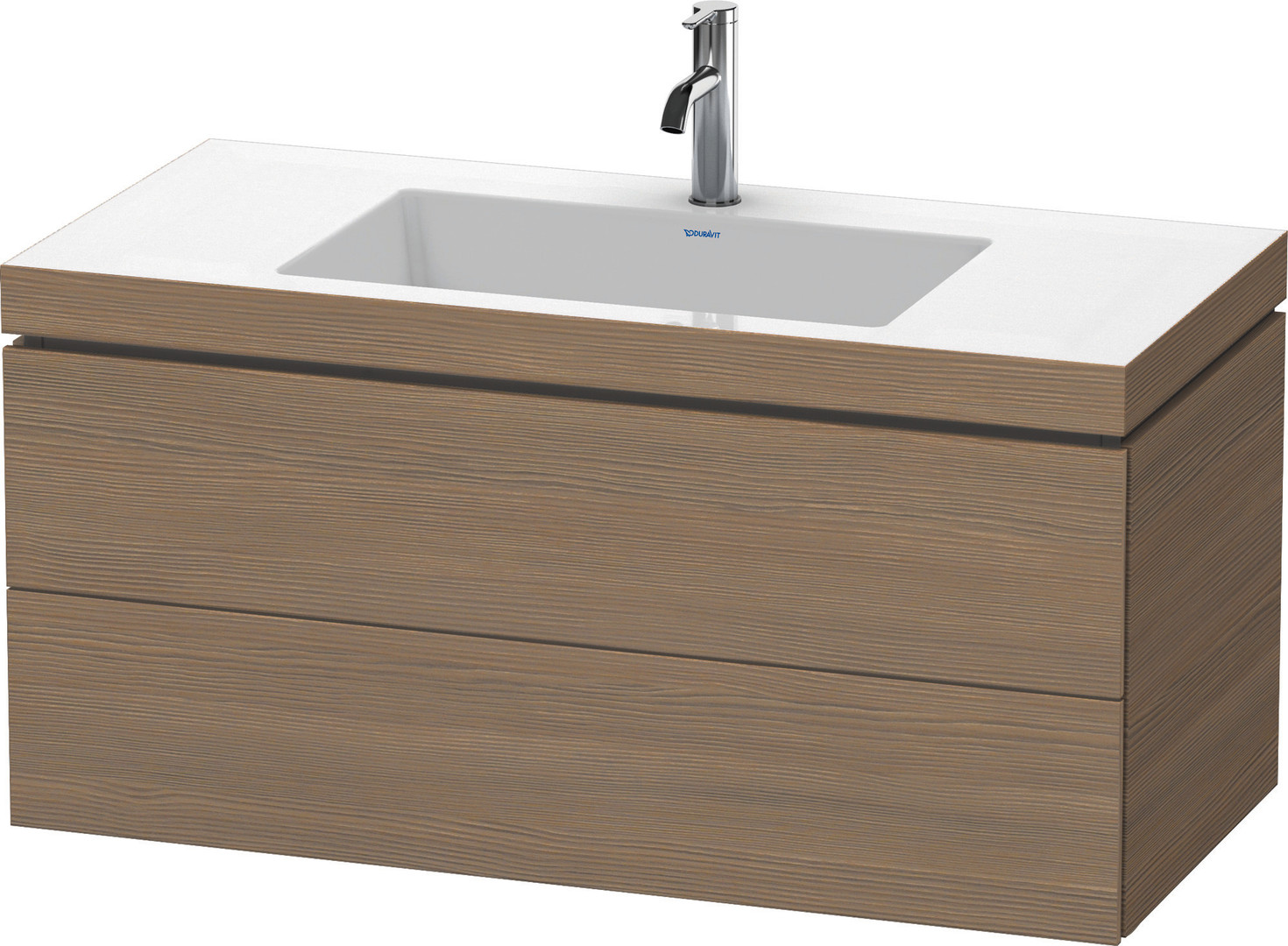Duravit Waschtisch-Unterschrank c-bonded L-Cube 100 x 48 cm, 1 Hahnloch, Eiche terra, 2 Schubkästen, wandhängend