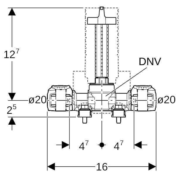 Geberit Kugelhahn FlowFit Ø 16 mm, 15,4 cm, mit Befestigung W535288