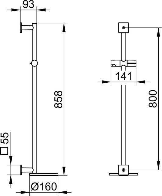 KEUCO Brausestange IXMO verchromt/schwarzgrau, Höhe 855mm, mit Ablage, Rosetten eckig W341164