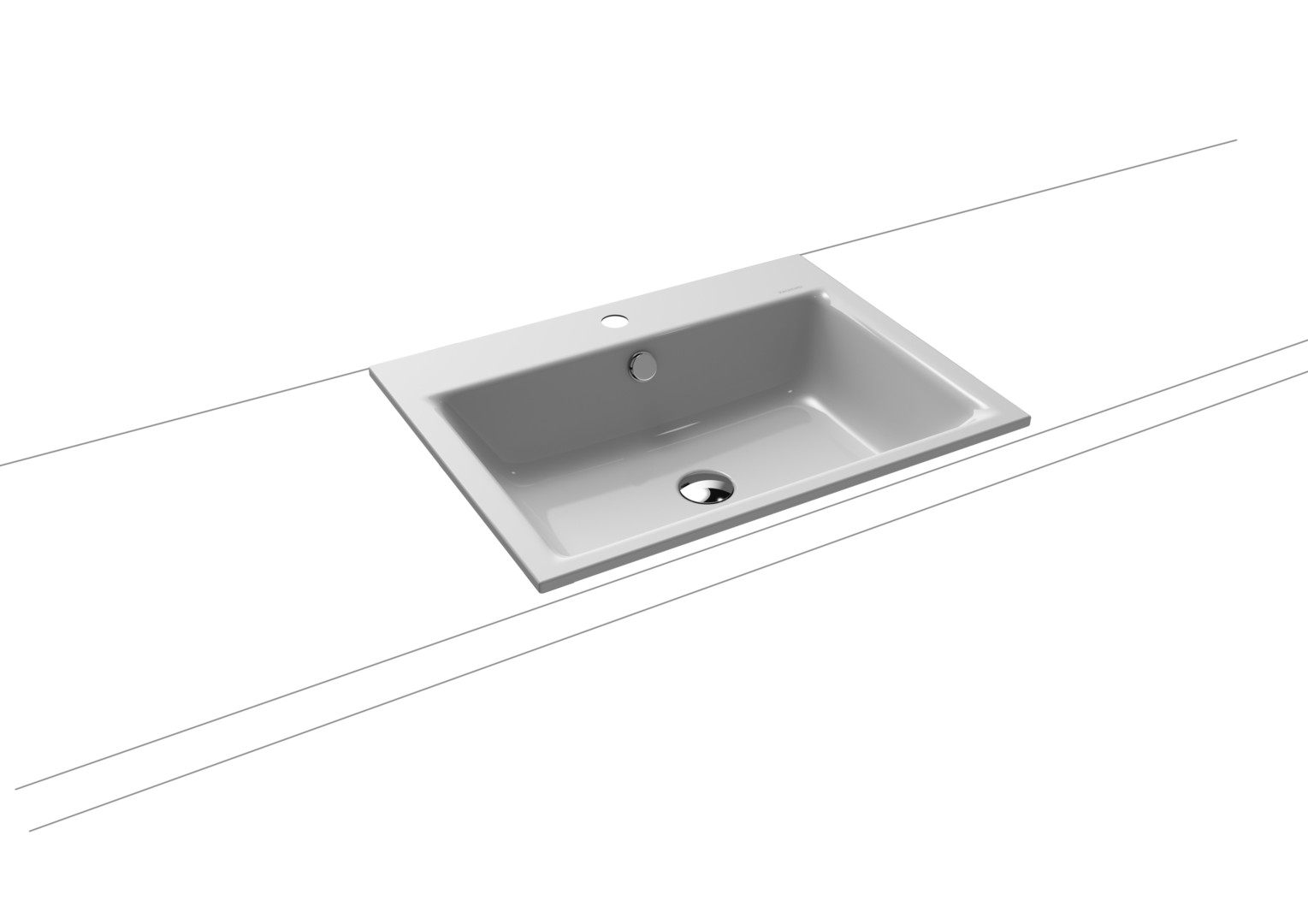 Kaldewei Einbau-Waschtisch PURO 3151 60x46cm, 1 Hahnloch, chrom, Perl-Effekt, weiß W44374