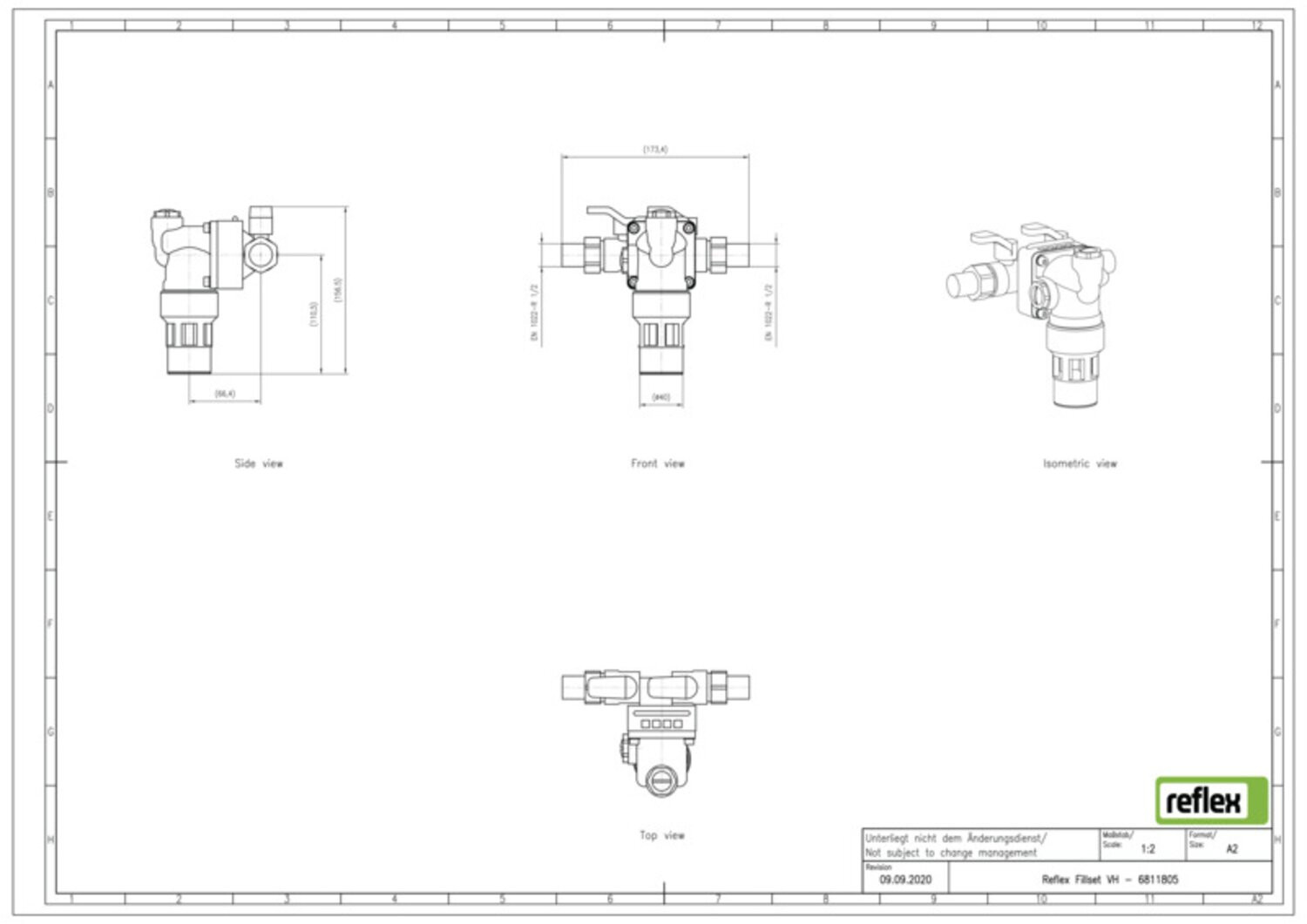 für Nachspeisesysteme nach DIN 1988 und DIN EN 1717, bei direktem Anschluss an Trinkwassernetze, mit DVGW-geprüftem Systemtrenner Typ BA, ein- und ausgangsseitige Absperrungen, variabel ohne Raster von Hand drehbar, zulässiger Betriebsüberdruck 10 bar, zulässige Betriebstemperatur 65 °C, Anschluss Eintritt/Austritt R 1/2/R 1/2