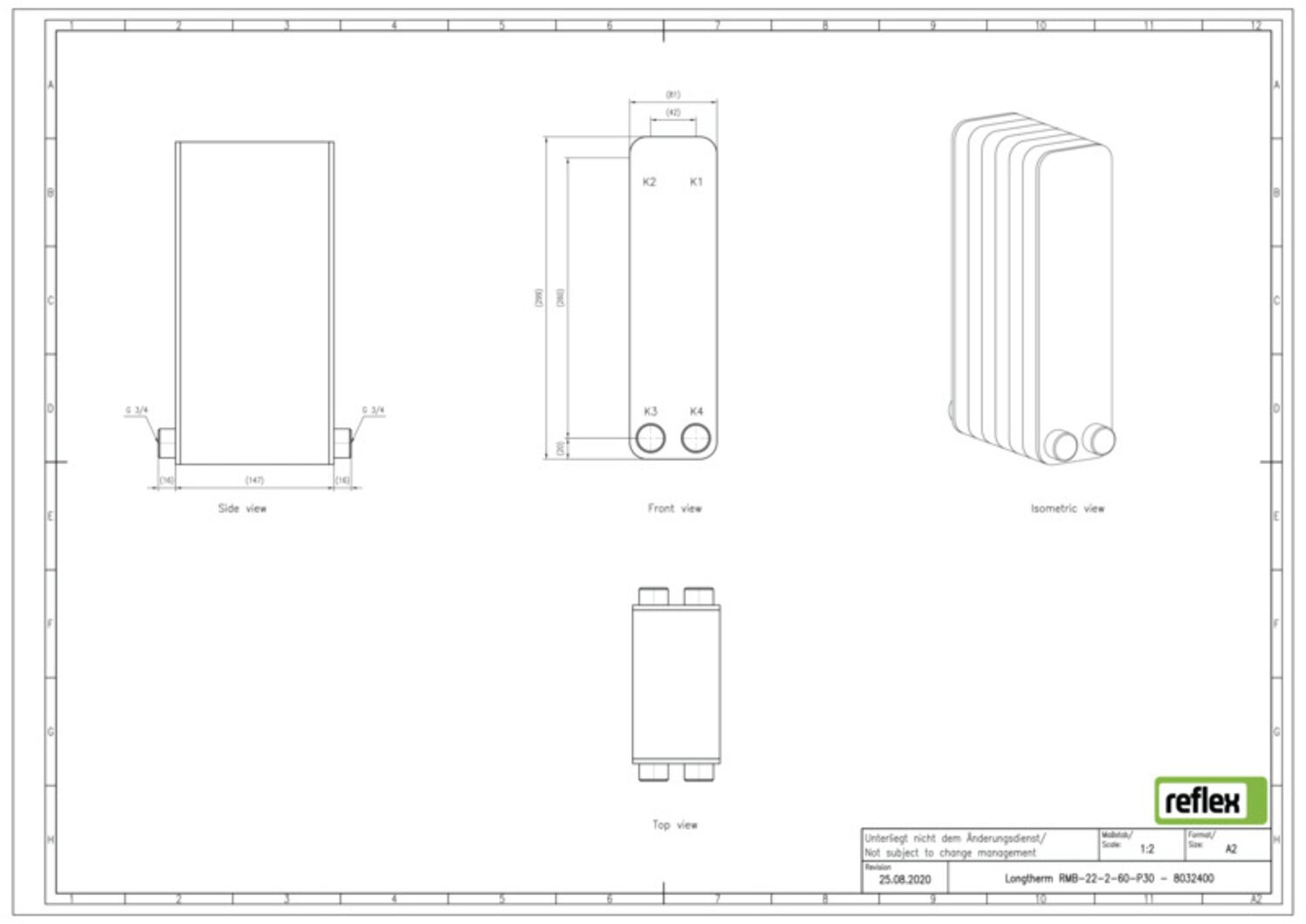 Reflex Wärmetauscher Longtherm RMB-22-2-60, Plattenzahl 60, gelötet, Edelstahl, zweigängig