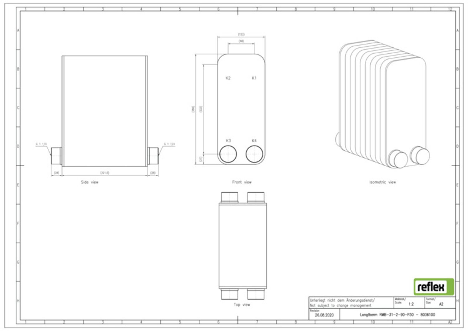 Reflex Wärmetauscher Longtherm RMB-31-2-90, Plattenzahl 90, gelötet, Edelstahl, zweigängig