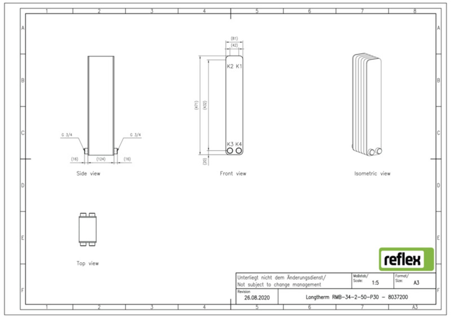 Reflex Wärmetauscher Longtherm RMB-34-2-50, Plattenzahl 50, gelötet, Edelstahl, zweigängig