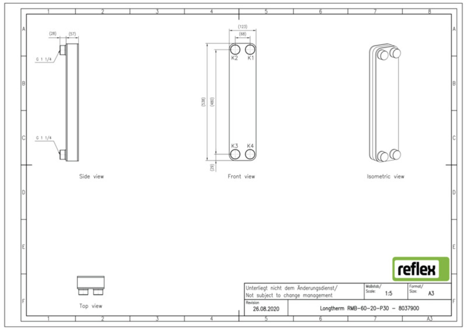 Reflex Wärmetauscher Longtherm RMB-60-20, Plattenzahl 20, gelötet, Edelstahl, eingängig