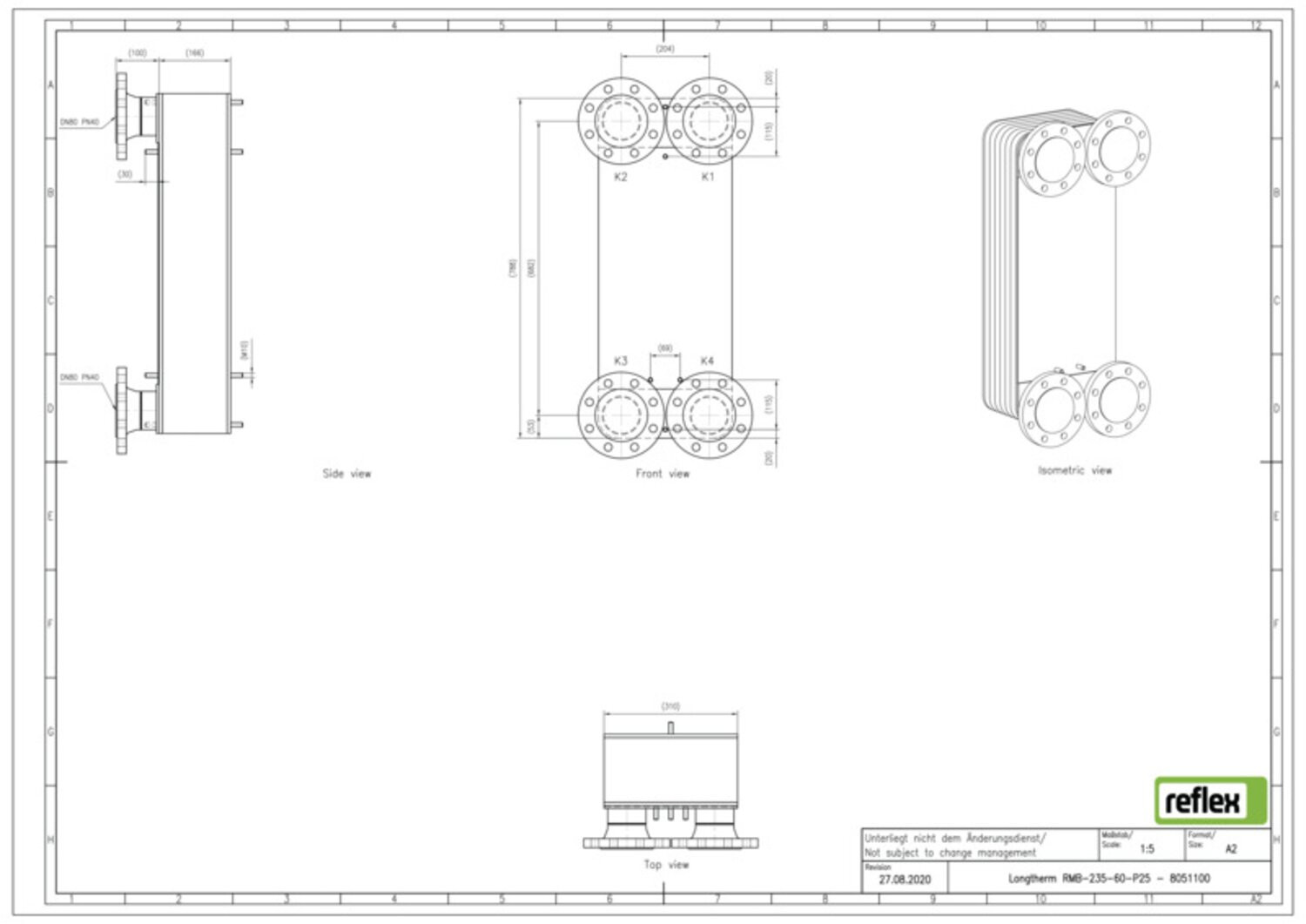 Reflex Wärmetauscher Longtherm RMB-235-60, Plattenzahl 60, gelötet, Edelstahl, eingängig