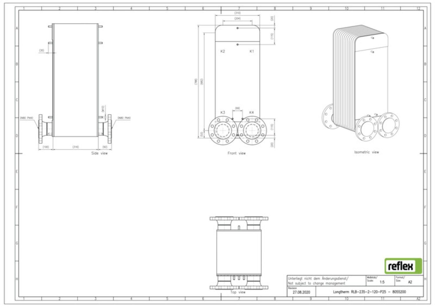 Reflex Wärmetauscher Longtherm RLB-235-2-120, Plattenzahl 120, gelötet, Edelstahl, zweigängig