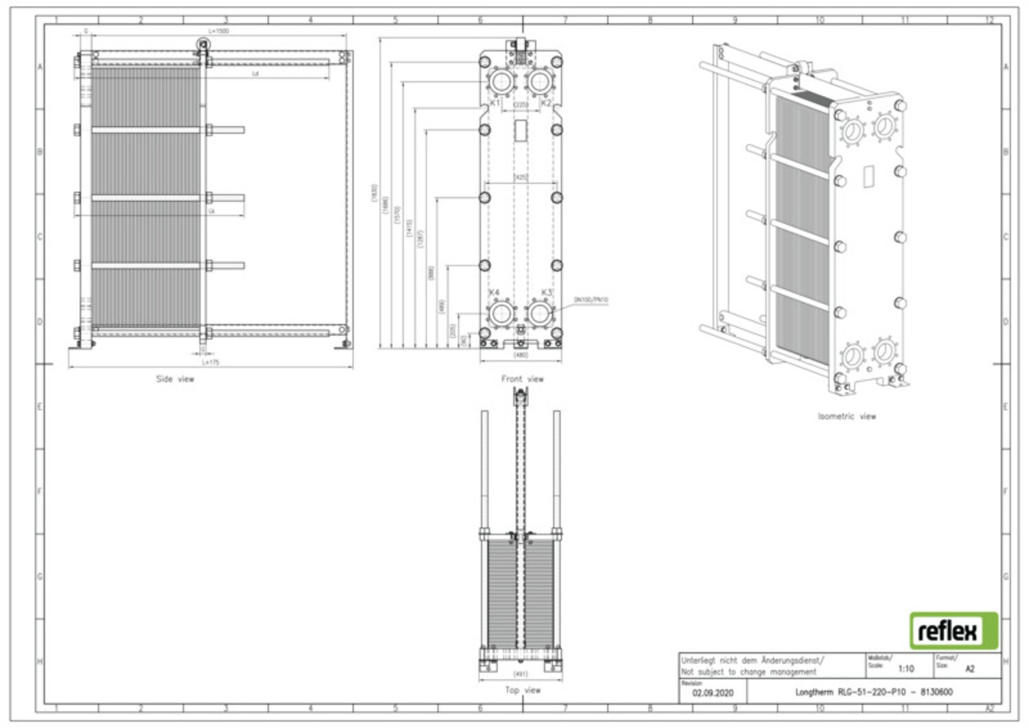 Reflex Wärmetauscher Longtherm RLG-51-220 Plattenzahl 220, geschraubt, Edelstahl