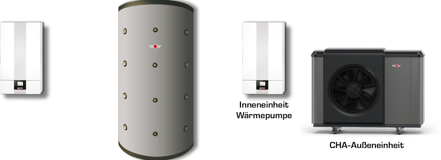 Wolf Paket Gas-Hybridheizung CGB 2-75, CHA10/400 V, mit Therme, Speicher, Wärmepumpe