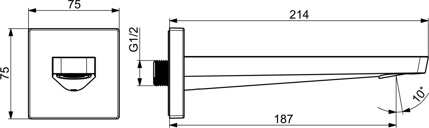 HANSA Auslauf HANSASTELA Wandmontage, Ausladung 187mm, Rosette eckig, chrom W314304