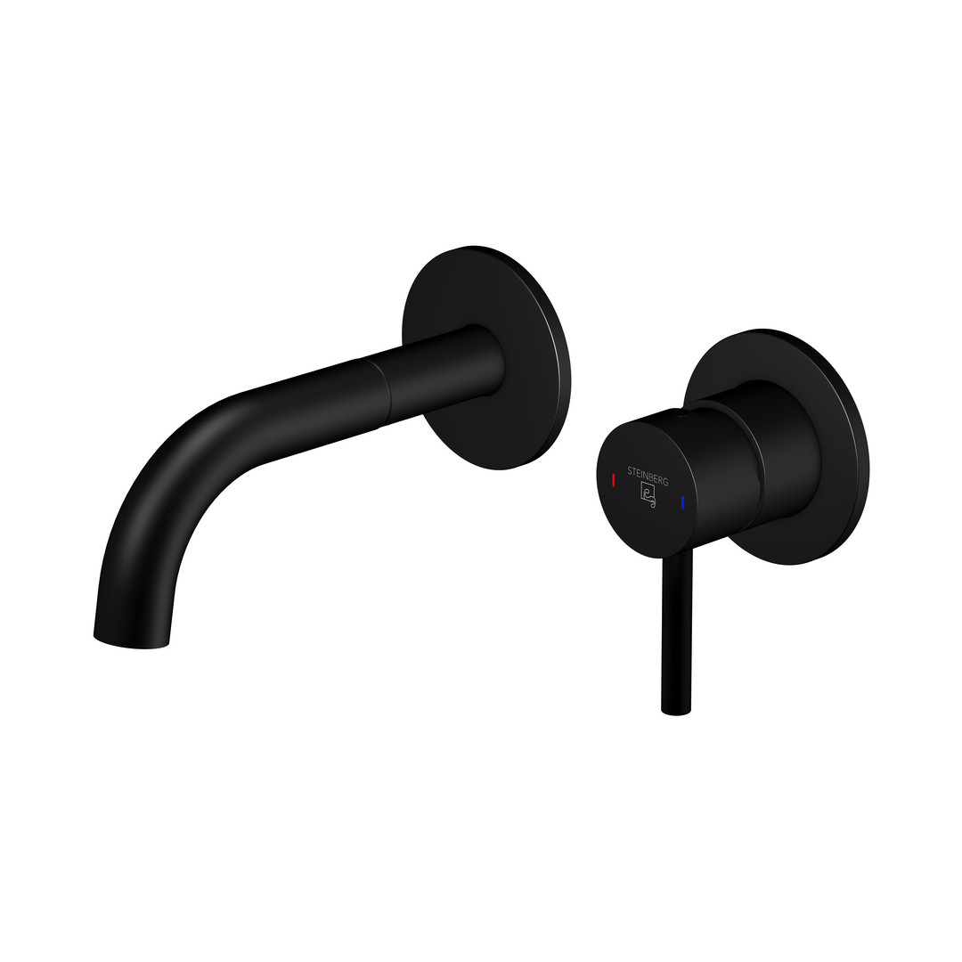 Steinberg Fertigmontageset Serie 100 Waschtisch-Einhebelmischer, Wandmontage, Ausladung 245 mm, matt black W323574