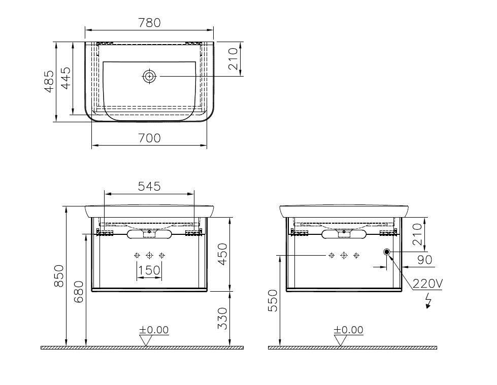 VitrA Bad Waschtisch-Möbel-Set Sento 78x48,5x52cm, 1 Vollauszug, anthrazit matt, Dekor W518152
