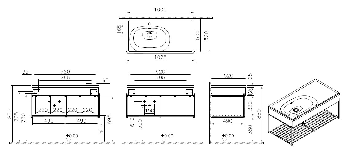 VitrA Bad Möbelwaschtisch-Set Equal 102,5x52cm, Möbelwaschtisch asymmetrisch, weiß, Ablage, mit Holzblende Beton W58219
