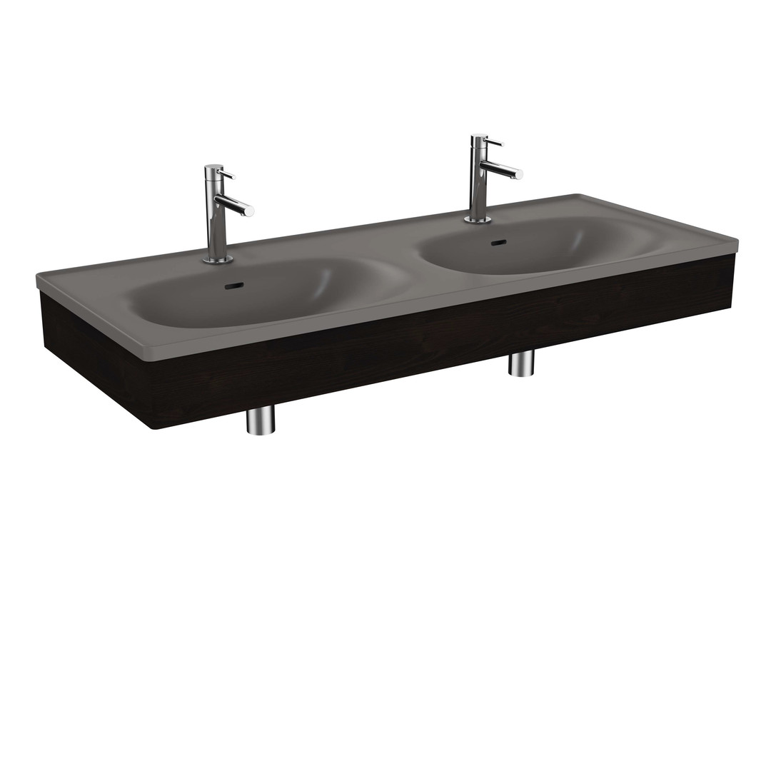 VitrA Bad Doppelmöbelwaschtisch-Set Equal 130x52cm, mit Möbelwaschtisch, steingrau matt, mit Holzblende schwarz-eiche W58234