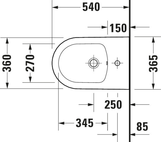 Duravit Wand-Bidet White Tulip 37x54cm, mit Hahnloch, Überlauf, Hahnlochbank, weiß