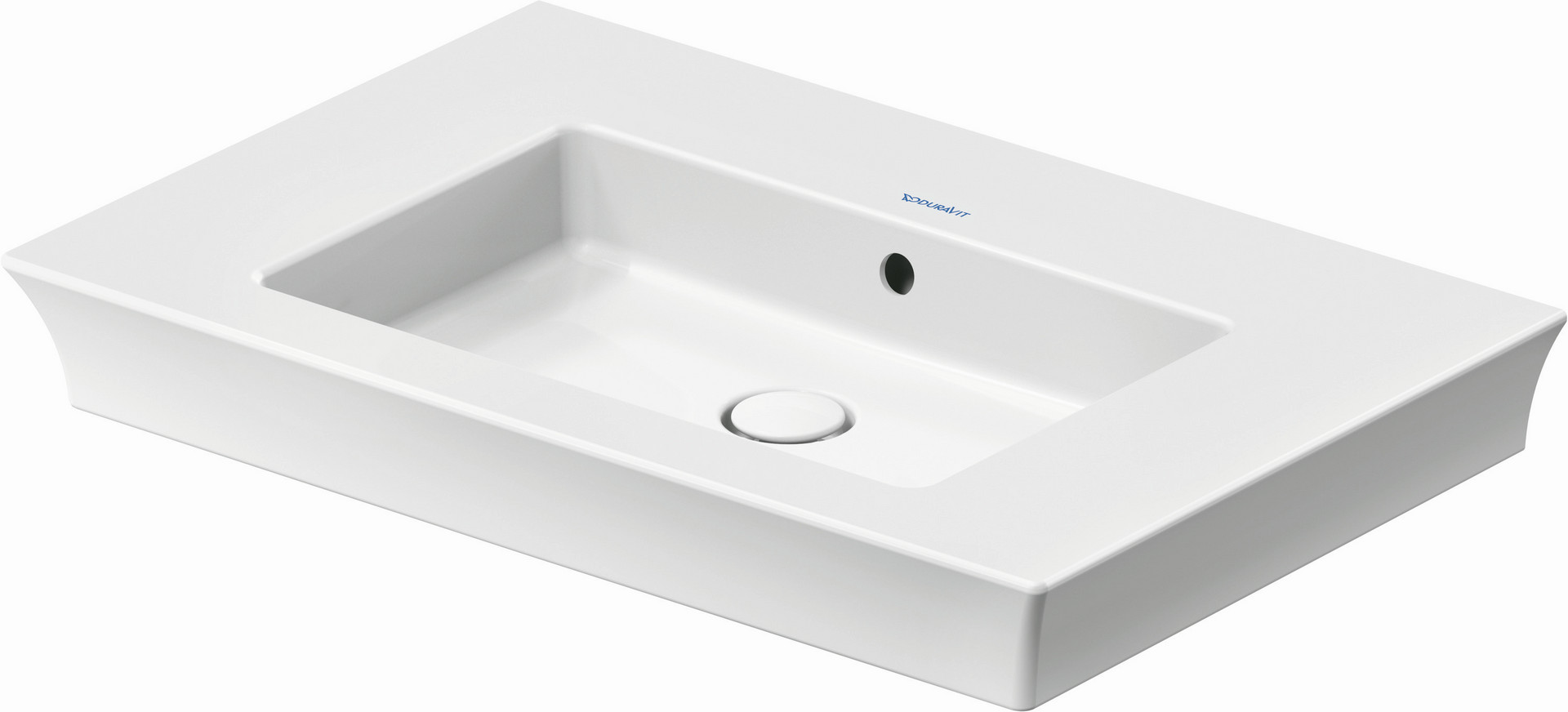 Material DuraCeram, Unterseite glasiert, geschliffen, mit Push-Open Ventil mit keramischer Ventilabdeckhaube, Raumsparsiphon wird empfohlen in Verbindung mit Waschtischunterbau, Artikel Nr. 236310 zur Befestigung von Waschtischen ab der Größe 100 cm werden zwei Befestigungen Artikel Nr. 6951000000 benötigt