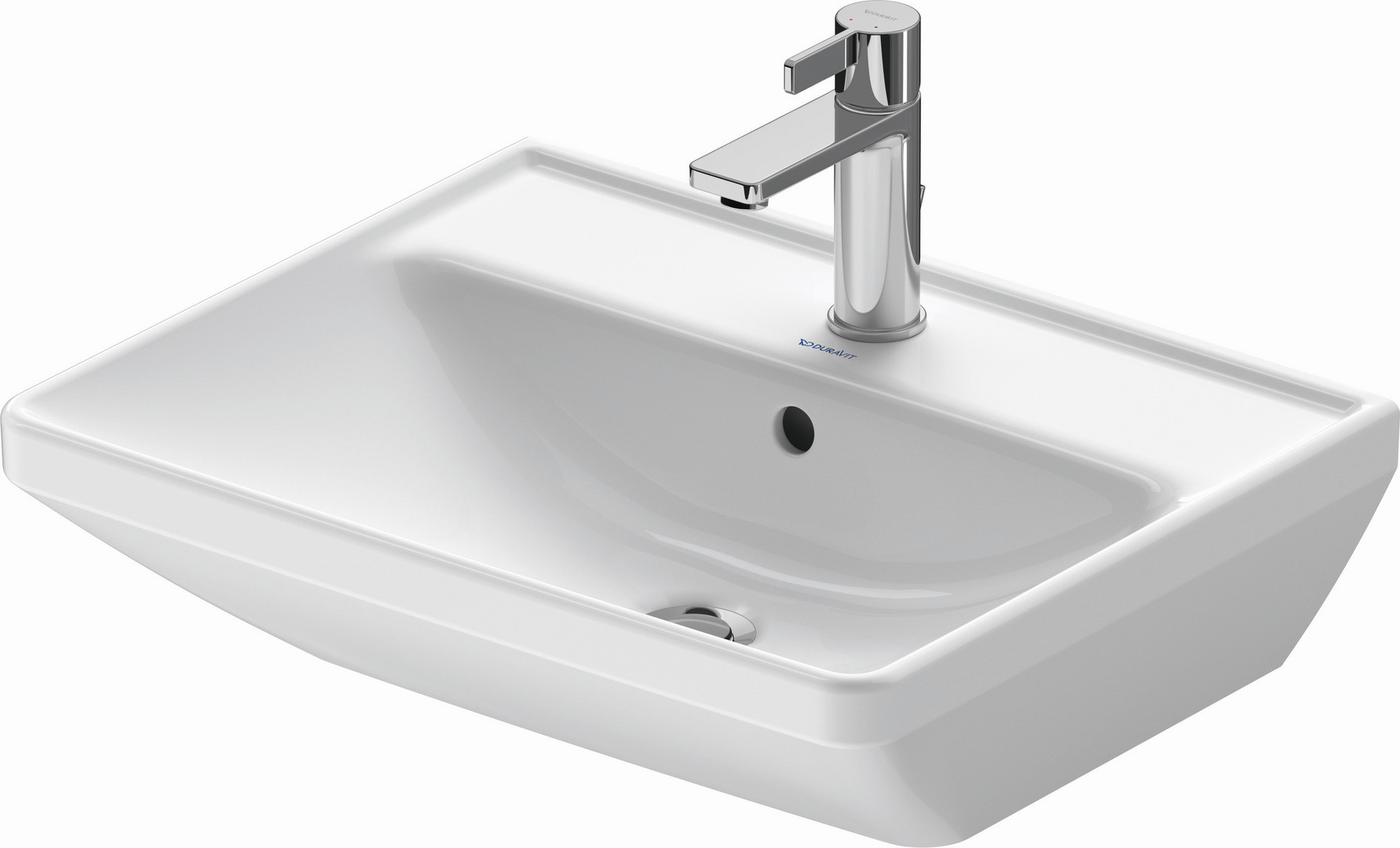 Duravit Waschtisch D-Neo 55 x 44 cm, mit Hahnloch, weiß, Überlauf, Hahnlochbank, weiß