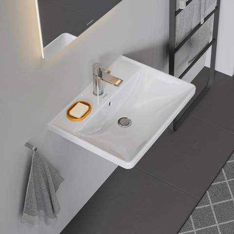 Duravit Waschtisch D-Neo 60 x 44 cm, mit Hahnloch, weiß, Überlauf, Hahnlochbank, weiß