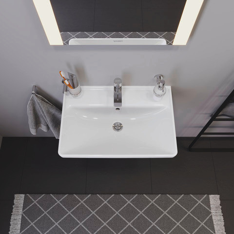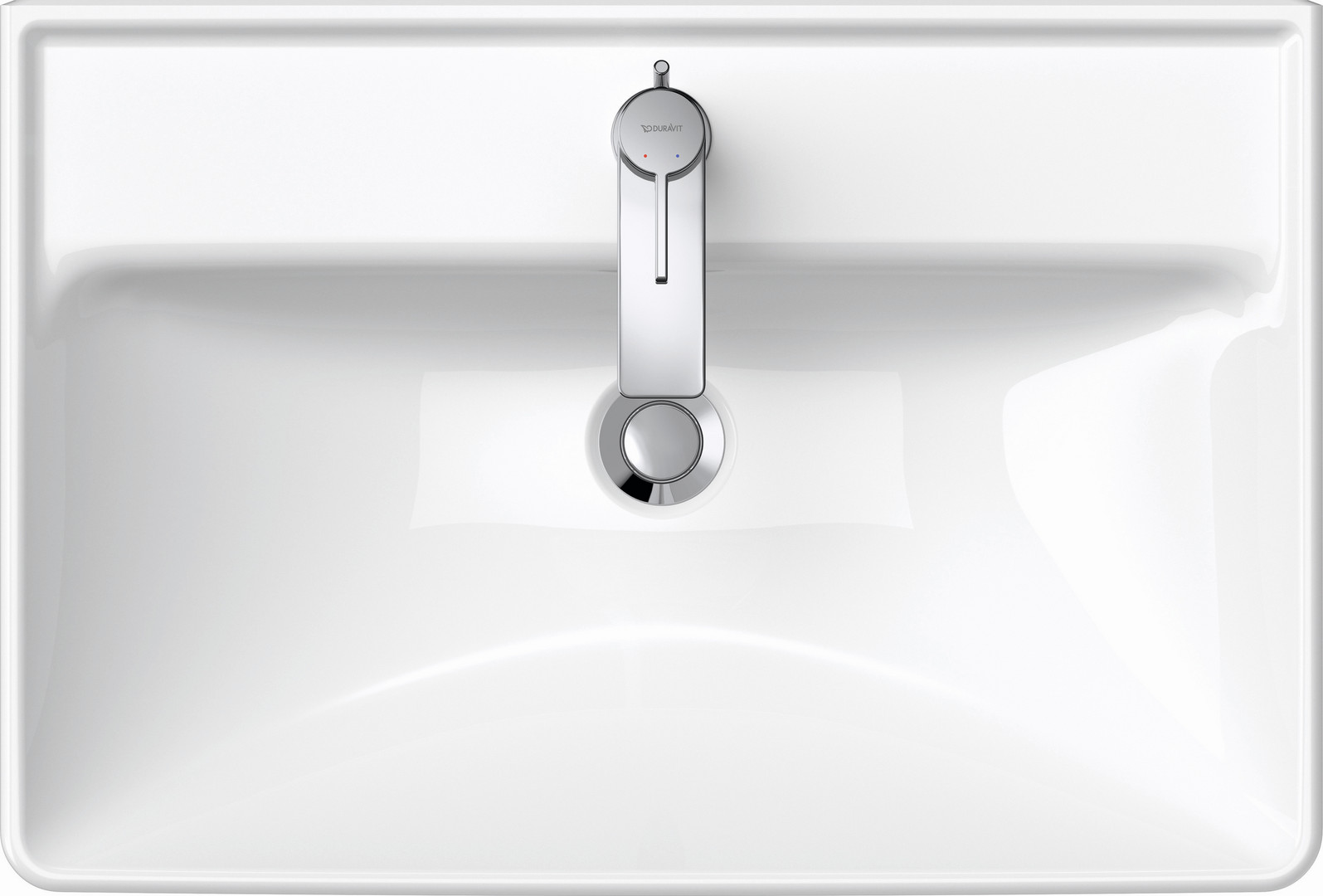 Duravit Waschtisch D-Neo 65 x 44 cm, mit Hahnloch, weiß WonderGliss, Überlauf, Hahnlochbank, weiß