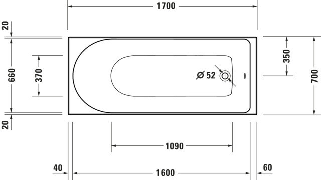 Duravit Rechteck-Badewanne D-Neo 170 x 70 x 46,5 cm, Einbauversion, 1 Rückenschräge, weiß W207037