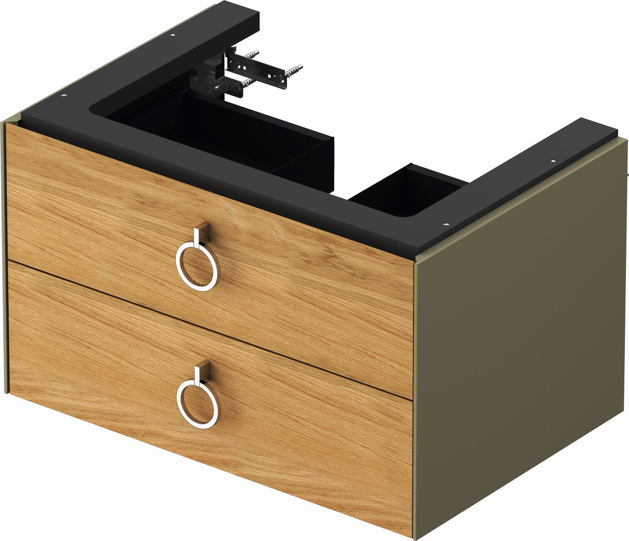 Duravit Waschtisch-Unterschrank White Tulip 68,4 x 45,8 cm, Eiche natur massiv/steingrau hochglanz, 2 Schubkästen mit Griff, wandhängend