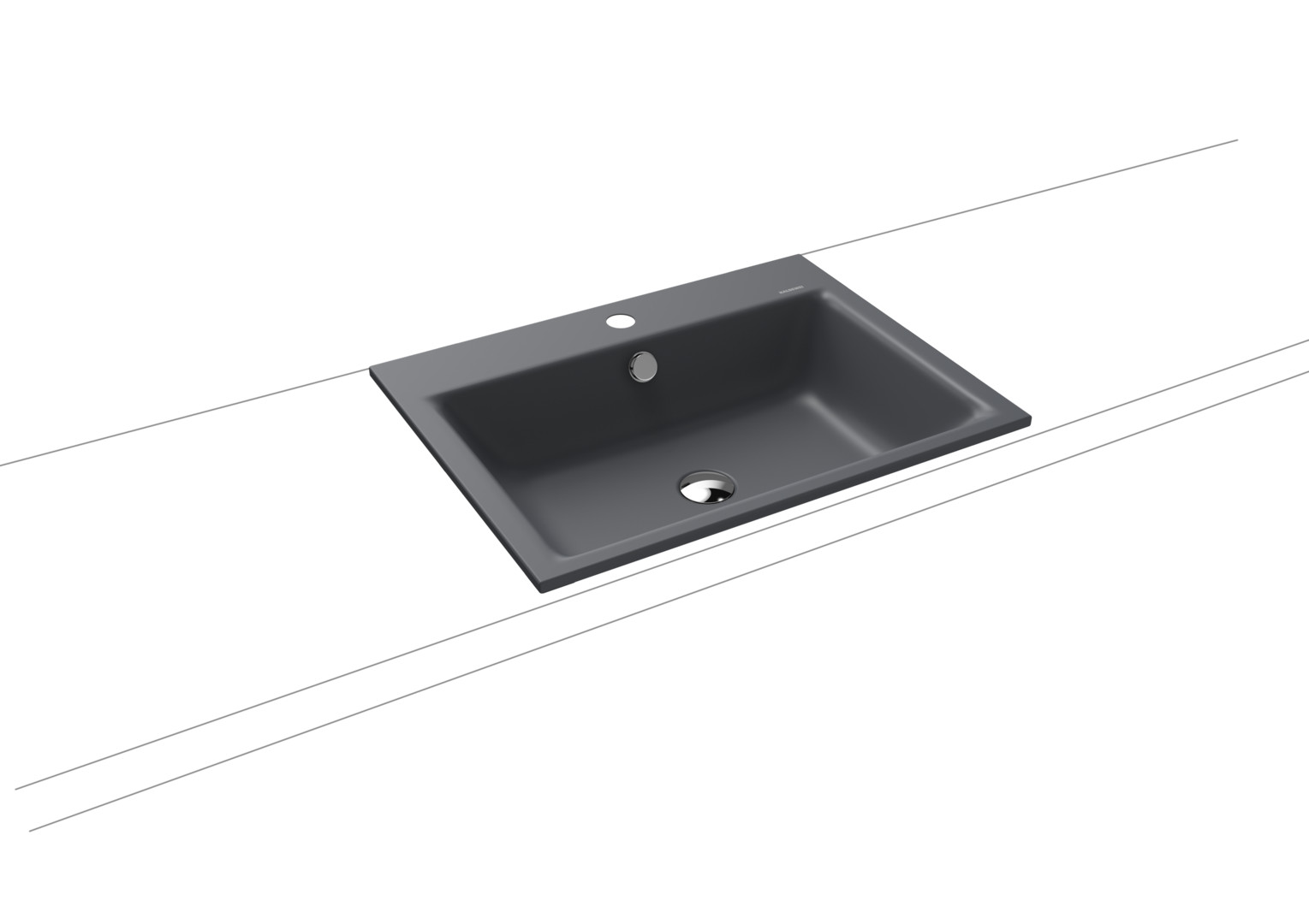 Kaldewei Einbau-Waschtisch PURO 3151 60x46cm, 1 Hahnloch, chrom, Perl-Effekt, cool grey70