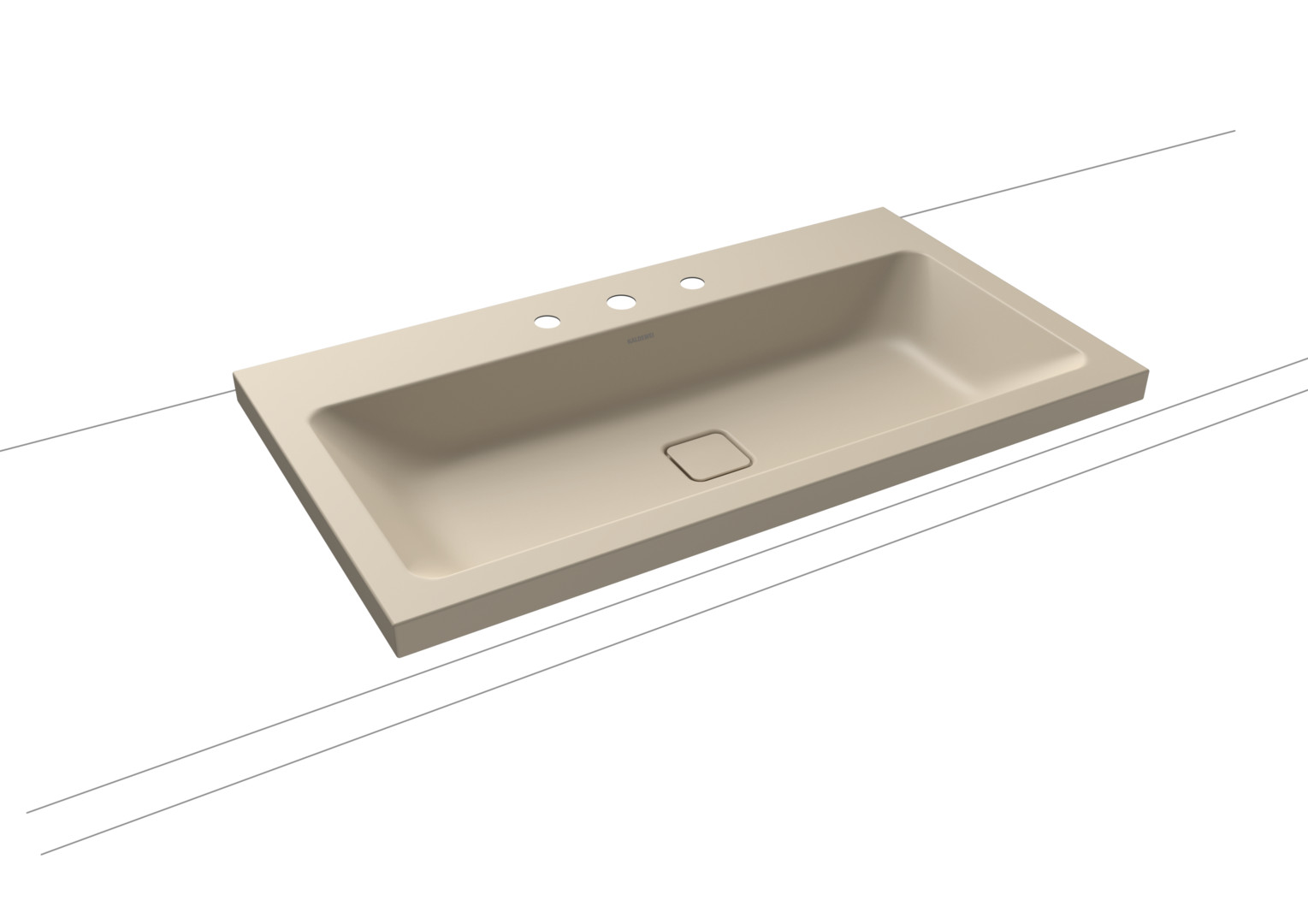Kaldewei Aufsatz-Waschtisch CONO 3084 90x50cm, 3 Hahnloch, Perl-Effekt, warm beige20