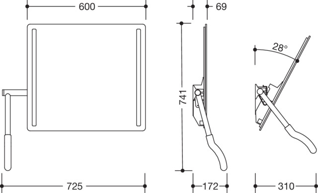 HEWI Kippspiegel 600x540x6mm, Hebel links, stahlblau W378630