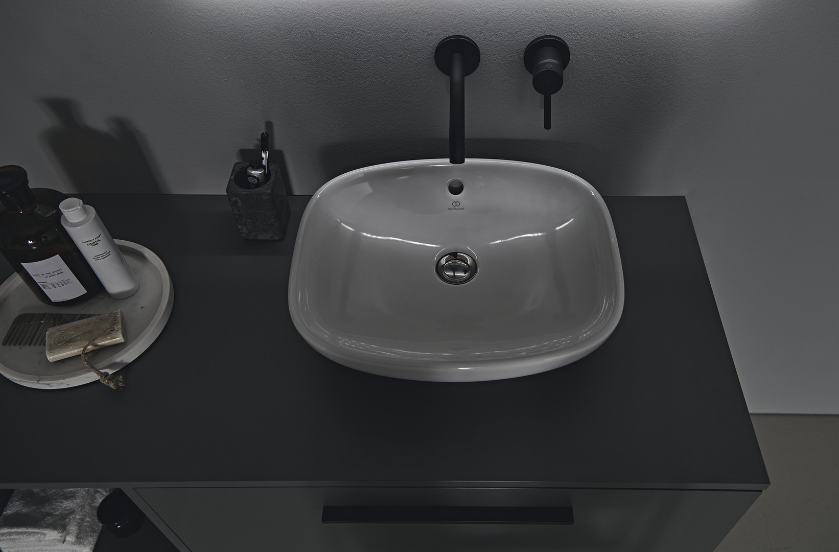 Ideal-Standard Fertigmontageset Ceraline für Wand-Einhebelmischer, Ausladung 180mm, silk black W318545