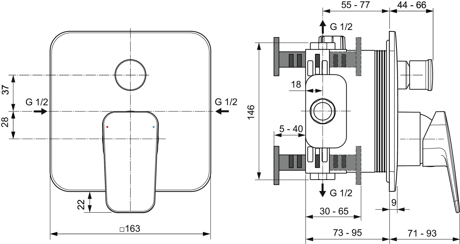 Bausatz 2 für Fertigmontage, Griff aus Metall mit Rot-/Blau-Markierung, Unterputz-Bausatz 1 zur Montage benötigt (A1000NU - separat erhältlich), Kartusche Ø 47 mm, CLICK-Kartusche mit keramischen Dichtscheiben, Kartuschenschwenkbereich 120°, Kartuschenübersetzung aus Edelstahl, Heißwassertemperaturbegrenzer, mit 1 Rosette (eckig) aus Kunststoff, DICHT-FIX System separate Abdichtung jeder Öffnung für optimalen Schutz des Bauwerks gegen Feuchtigkeit und Wasser, mit Zugumsteller Wanne/Brause, Geräuschverhalten DIN 4109 Gruppe 1, Lebensdauer DIN EN 817, DIN EN 200