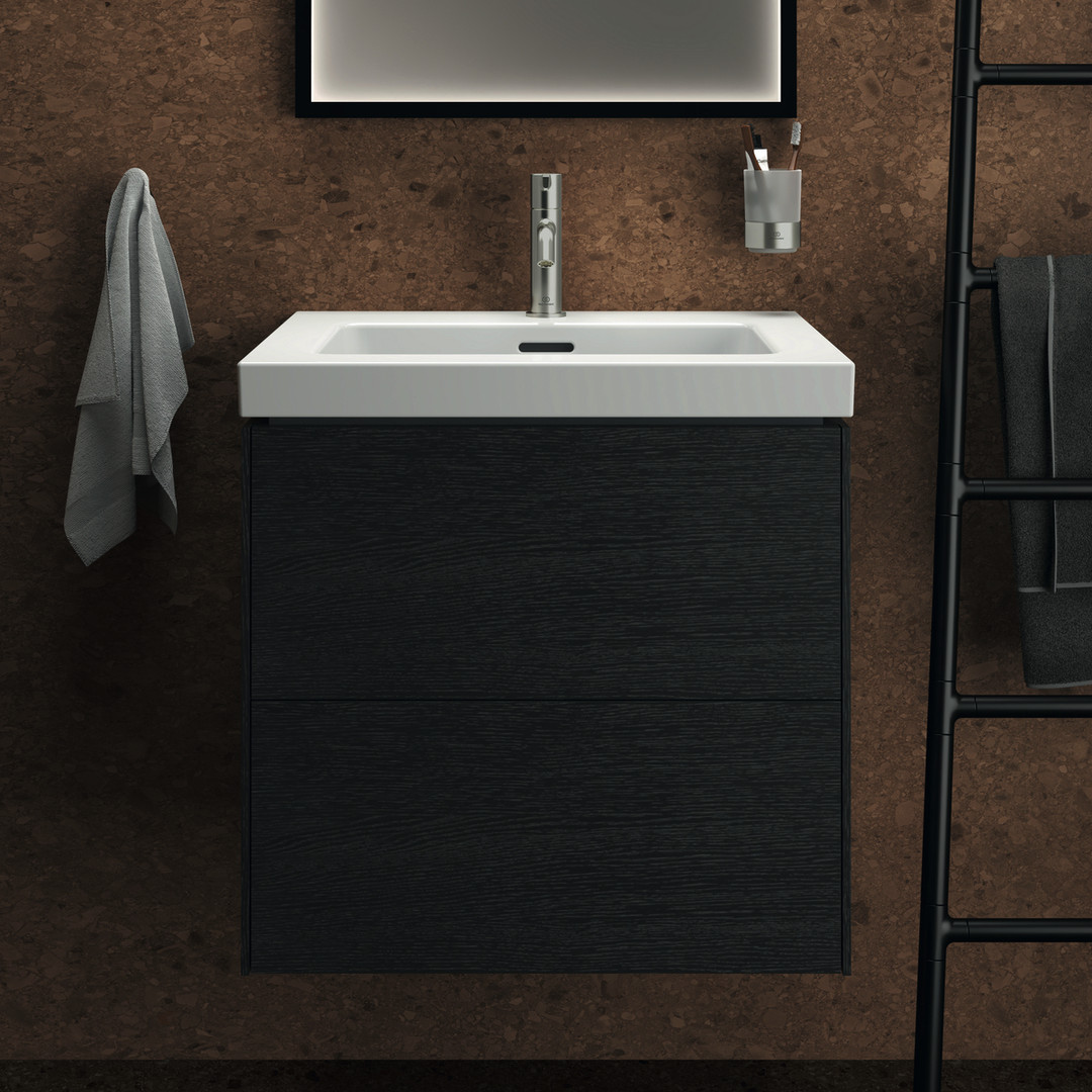 Ideal-Standard Waschtisch-Unterschrank Conca 2 Auszüge, 60 x 50,5 x 55,5 cm, Eiche geflammt Furnier