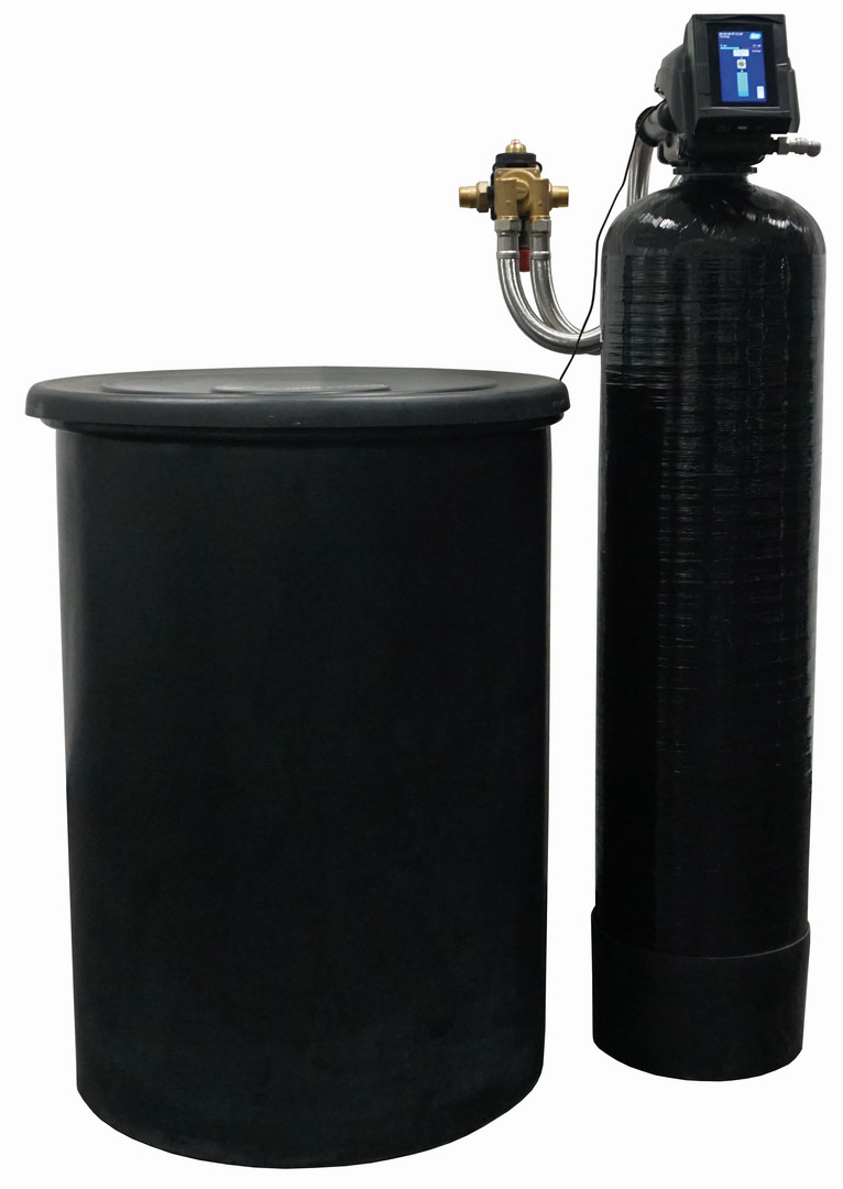 Mengen- und zeitgesteuerte Einzelenthärtungsanlage mit WLAN, gesamtes Wasser für Industrie/Gewerbe und Mehrfamilienhäuser oder entsprechende Teilwassermengen für Warmwasser/Schwimmbad/Waschmaschine und Geschirrspüler, internetfähige Steuerung via SYR App zur Projektverwaltung über Smartphone/Tablet oder PC, mit automatischer Entkeimung, mit Anschlussmaterial und Umgehungsventil, 230 V
