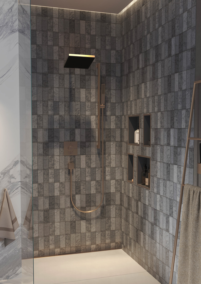 hansgrohe XtraStoris Individual Wandnische 300x300x100mm, mit Designrahmen, mattschwarz, brushed bronze W493966