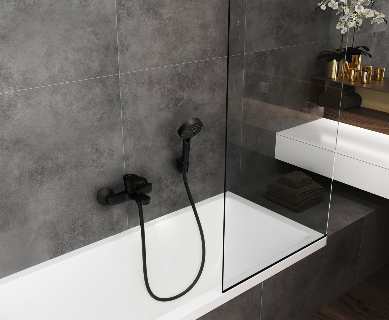hansgrohe Wannen-Einhebelmischer Vernis Blend AP, 2 Verbraucher, Ausladung 171mm, mattschwarz