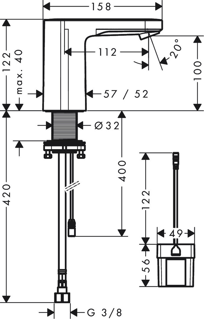 ComfortZone 100, Ausladung 112 mm, Normalstrahl, schwenkbare Strahlformer, max. Durchflussmenge bei 3 bar 5 l/min, für Kaltwasser oder vorgemischtes Wasser, mit isolierter Wasserführung-Wasserwege ohne Kontakt zu Nickel und Blei, für Durchlauferhitzer geeignet, Infrarot Näherungselektronik, automatische Umgebungsanpassung der Infrarotsensorik, Laufzeit einstellbar, Laufzeit 10 Sekunden, 20 Sekunden, 30 Sekunden, Hygienespülung aktivierbar (automatischer Wasserlauf), Frequenz Hygienespülung 24 h, 48 h, 72 h, Spülzeit Hygienespülung 10 Sekunden, 20 Sekunden, 30 Sekunden, Dauerspülung aktivierbar (einmaliger Wasserlauf für 200 Sekunden, geeignet zur thermischen Desinfektion), Reinigungsfunktion manueller Wasserstop zur Beckenreinigung, Anschlussart G 3/8 Anschlussschläuche, Schmutzfangsiebe in den Anschlussschläuchen, Frequenz Hygienespülung und Spülzeit, Hygienespülung sind voneinander abhängig (24 h-10 Sekunden, 48 h-20 Sekunden, 72 h-30 Sekunden), AirPower Technologie, Sensor Activation