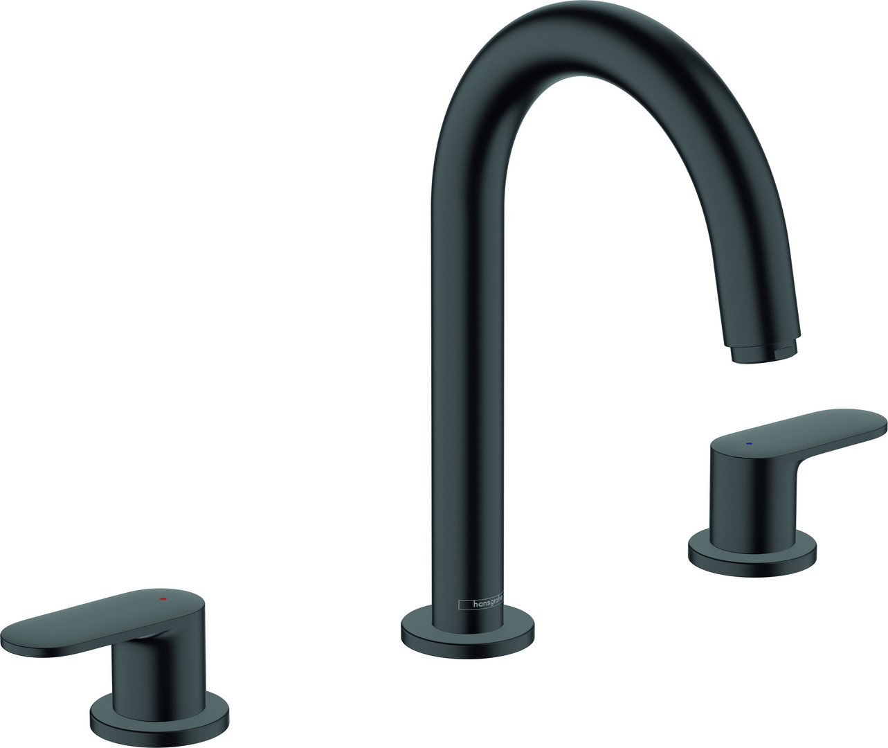 hansgrohe 3-Loch-Waschtisch-Armatur Vernis Blend mit Zugstangen-Ablaufgarnitur, mattschwarz