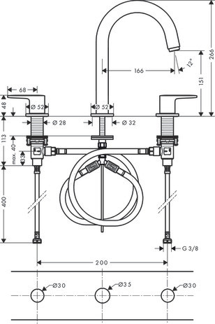hansgrohe 3-Loch-Waschtisch-Armatur Vernis Blend mit Zugstangen-Ablaufgarnitur, chrom W301715