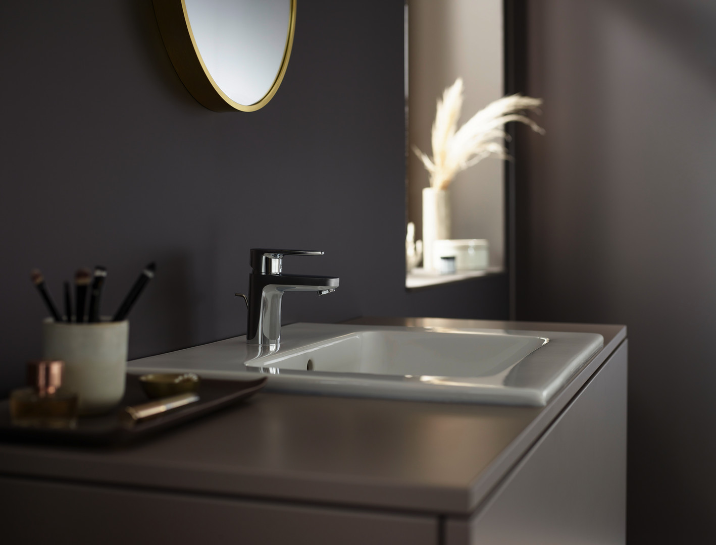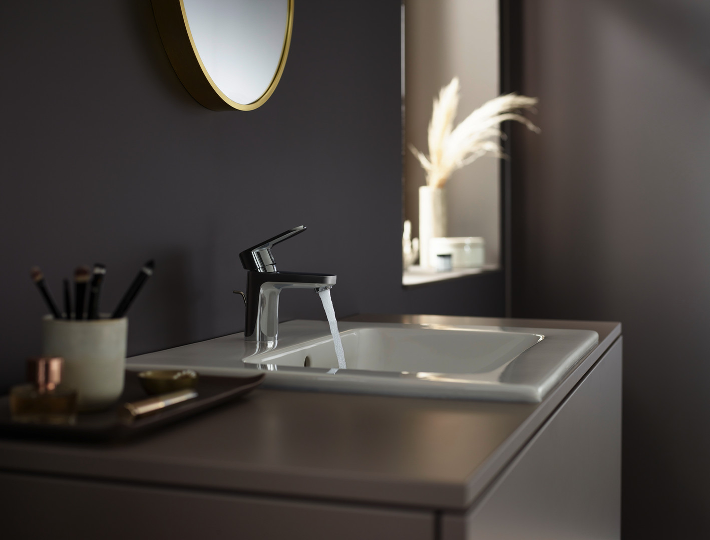 hansgrohe Waschtisch-Einhebelmischer 70 Vernis Blend mit Zugstangen-Ablaufgarnitur, mattschwarz W301710