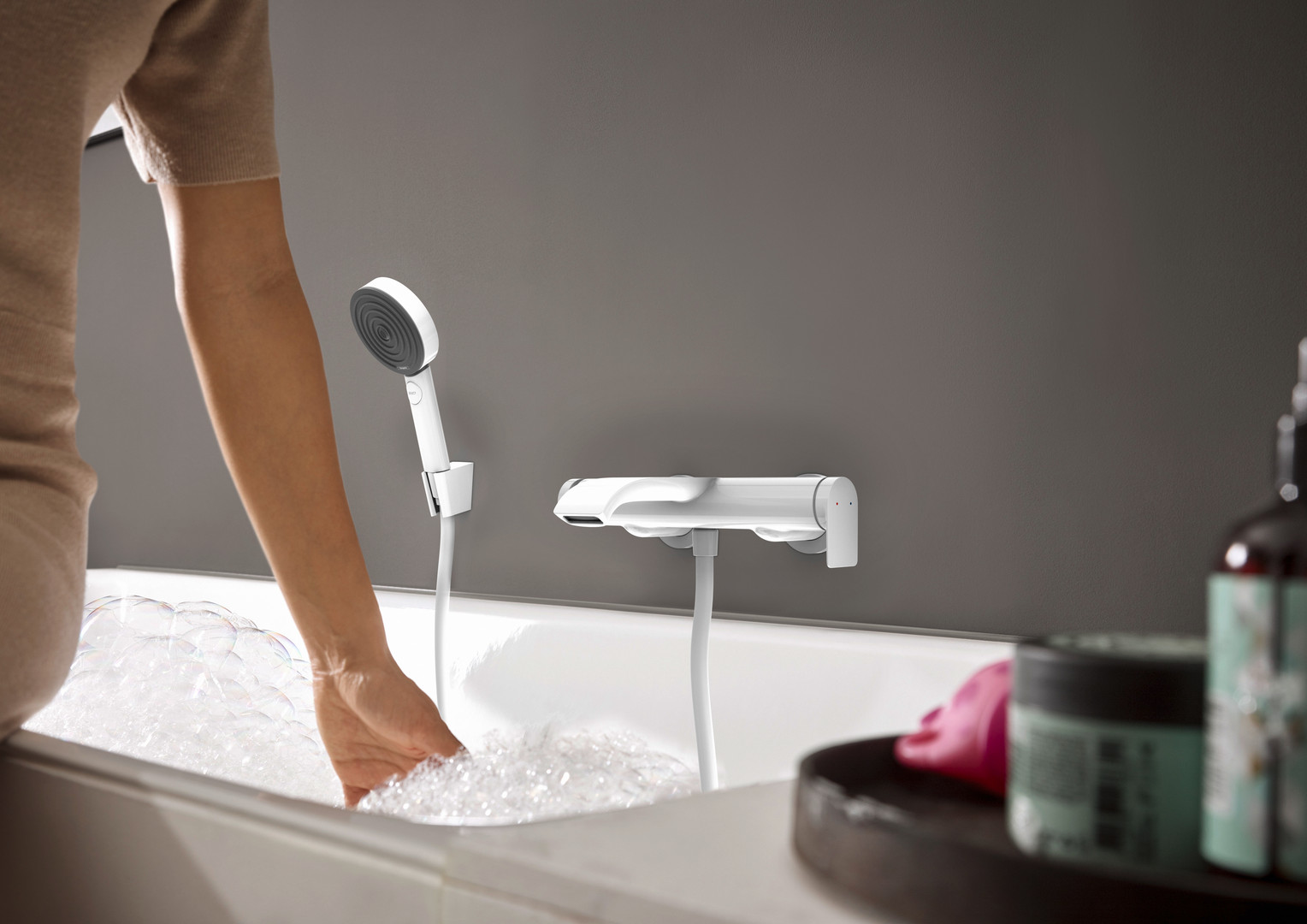 hansgrohe Wannen-Einhebelmischer Vivenis AP, Ausladung 216mm, mattweiß