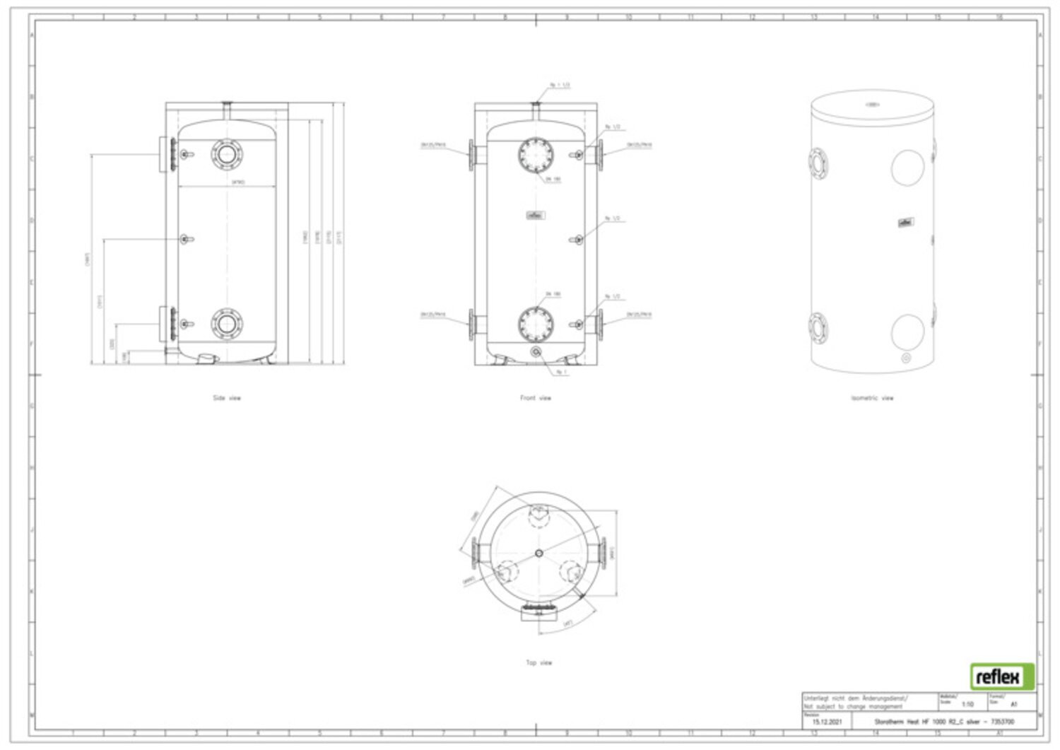 Reflex Pufferspeicher Storatherm Heat HF 1500/R2_C 1413 l, Ø 1000/1240 mm, DN 125/PN 16, mit Isolierung W817564