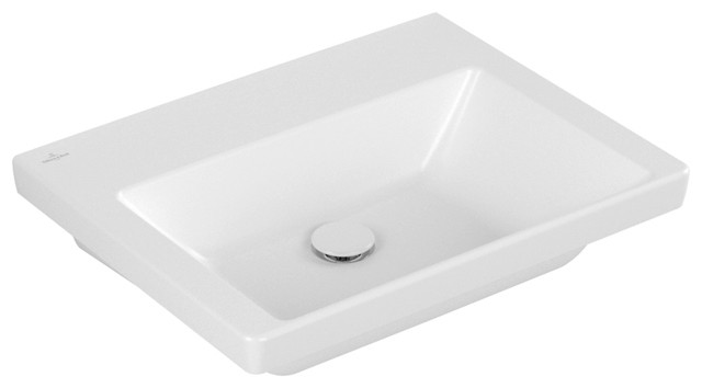 V&B Schrank-Waschtisch Subway 3.0 60x47cm, eckig, Unterseite geschliffen, ohne Hahnloch/ohne Überlauf, stone white C-plus