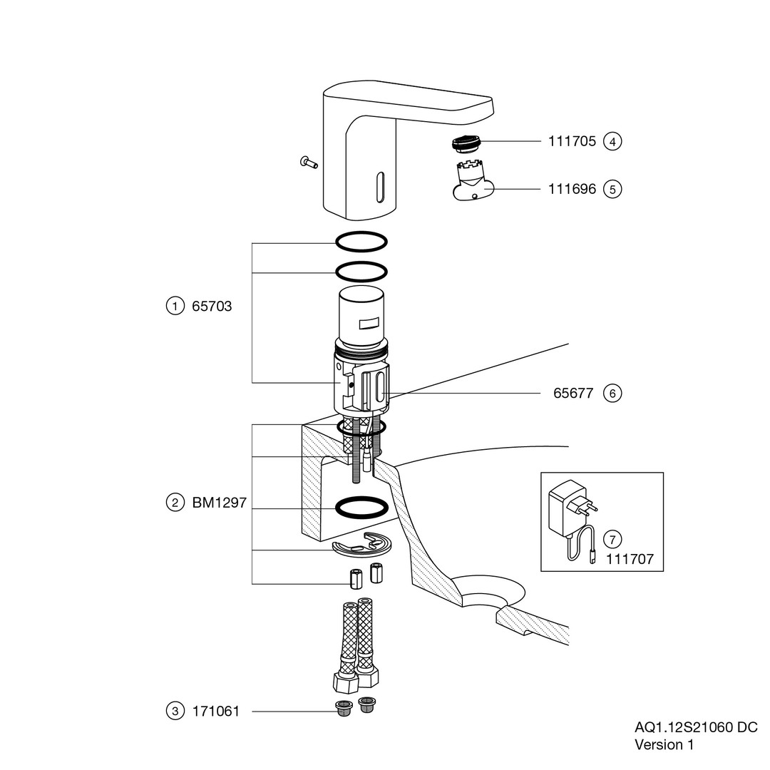 Durchfluss 5 l/min, für Kalt- und Mischwasser, Kaltwasser 3/8" T-Verteiler notwendig, siehe Zubehör Art. Nr. 65755, Laminar-Strahlregler mit dynamischer Mengenregulierung 5 l/min, winkelverstellbar und diebstahlgeschützt, einstellbare, aktive, fehlauslösungsresistente Infrarotsensorik, Elektronikmodul mit einstellbarem Erfassungsbereich, Hygienespülung, Dauerspülung und Reinigungsmodus, Sensorparameter werkseitig voreingestellt Nachlaufzeit ca. 1-2 sec, Dauerlauf max. 4 min, Erfassungsbereich 200 mm, Reinigungsmodus 60 sec, Hygienespülung ist deaktiviert, asymmetrischer Erfassungsbereich, stabile Objekterkennung, Einstellungen und Service auch per App über Smartphone möglich, siehe Zubehör Art. Nr. 65713, App kostenlos im App Store und Google Play Store für iOS und Android erhältlich „HEWI SENSORIC AQ", bei Ausfall der Betriebsspannung Sicherheitsabschaltung, benutzerdefinierte Einstellungen bleiben erhalten, ohne Temperaturverstellhebel Hohe Hygiene, vandalen- und missbrauchsicher, die voreingestellte Temperatur liegt in der Komfortzone von 30-36 °C, Temperatureinstellungen durch seitlichen Zugang leicht möglich, Anschluss über flexible Druckschläuche mit eingeflochtener Warm-Kalt-Markierung, 450 mm, G 3/8, integrierte Schmutzfangsiebe, Armaturenkörper Messing, 145 mm hoch, Ausladung 193 mm, Auslauf starr, ohne Ablaufgarnitur, geeignet für thermische Desinfektion bei 70 °C nach DVGW W 551, Geräuschklasse 1, entspricht DIN EN 15091, mit WELL-Label