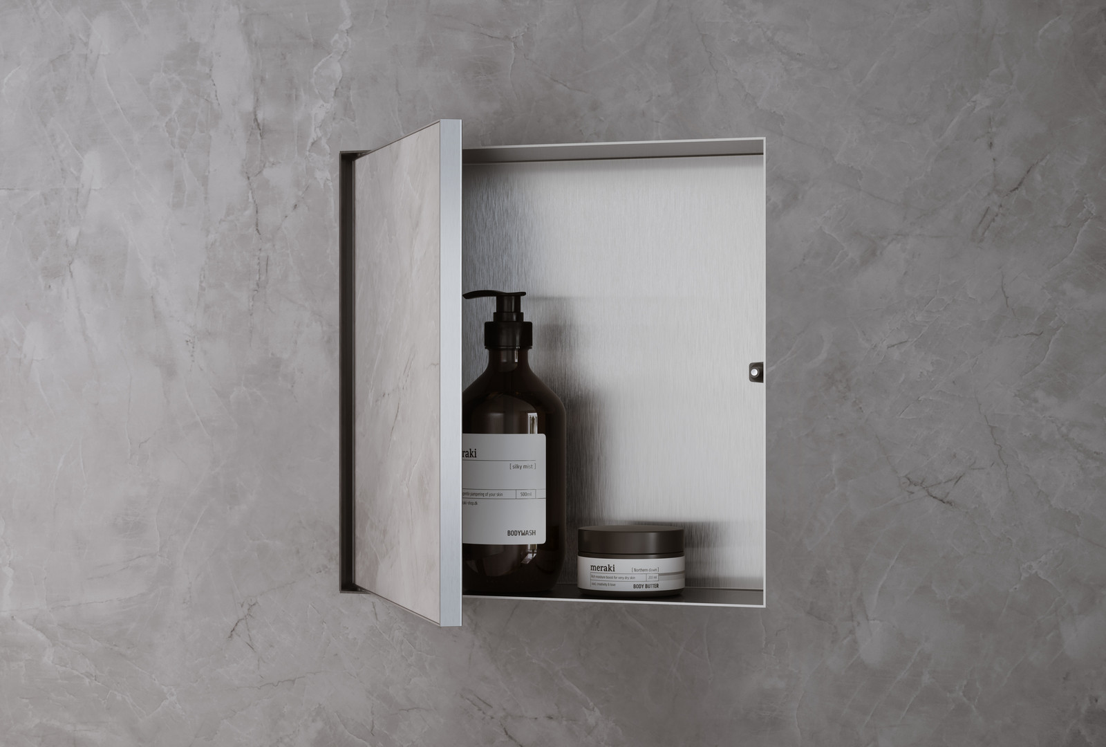 bestehend aus Wandnische mit befliesbarer Tür, Dichtungsset, befliesbare Push-Open Tür, Tiefe der befliesbaren Tür 12 mm, Einbautiefe 140 mm, Anwendungsbereich Neubau, Sanierung, variable Installationstiefe, speziell für die Anwendung im Nassbereich, Anpassung an Fliesenstärke möglich, Wandtyp: Trockenbau, Nassbau, Material Dichtungsset: Polystyrol (PS), Werkstoffgüte Wandnische Edelstahl V2A (1.4301), Vermeidung von Wasserschäden durch wasserdichtes Grundset und vormontiertes Dicht-Vlies