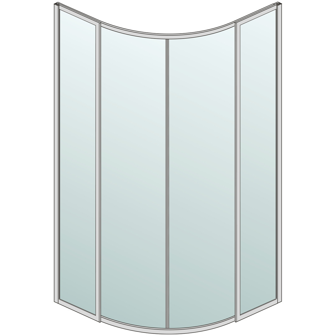 Palme Runddusche 4-tlg. Valletta EOS 78 x 185 cm, Radius 55cm, KGL Tropfen transparent, Alusilber W280821