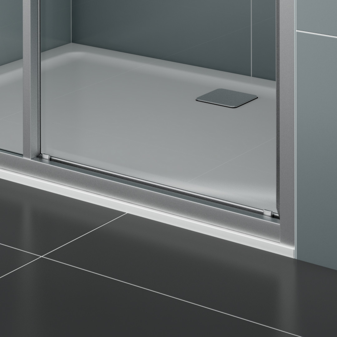 Palme Schiebetür 3-tlg. in Nische/Seitenteil Valletta EOS 97,5 x 185 cm, KGL Tropfen transparent, Alusilber W280837