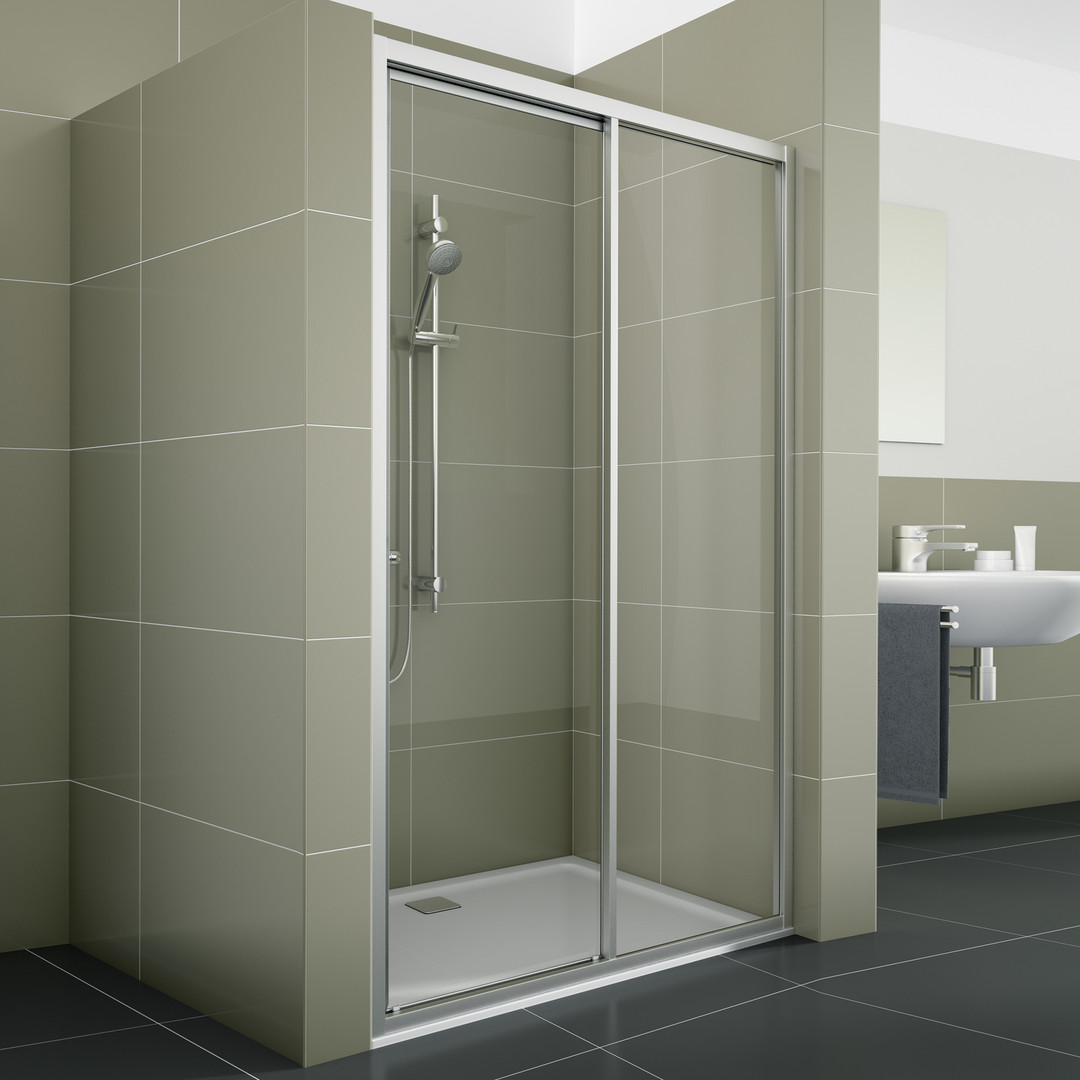 Palme Schiebetür 2-tlg. in Nische Valletta FO 120 x 195 cm, ESG transparent, alusilber