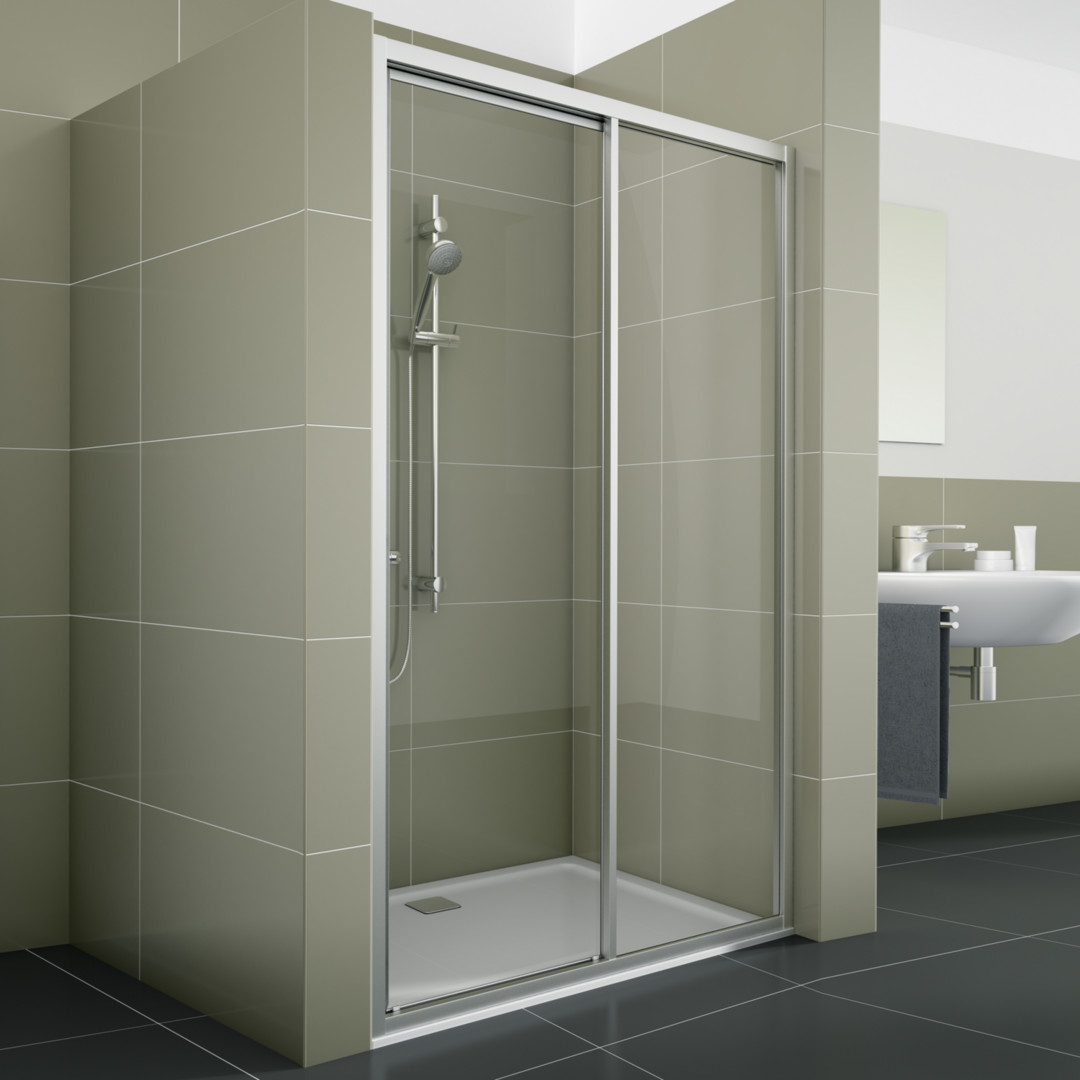 Palme Schiebetür 2-tlg. in Nische Valletta FO 120 x 195 cm, ESG transparent, alusilber W280659