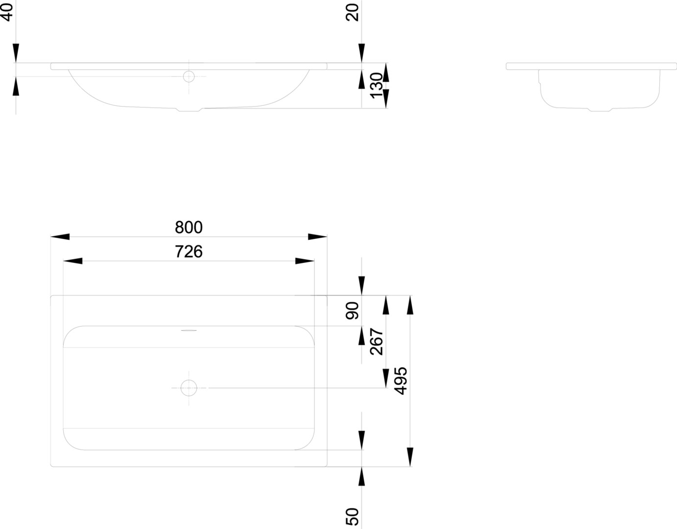 Einbau-Waschtisch BetteOne A139 80x49,5cm, weiß W41976