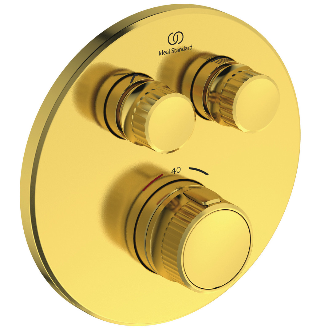 Ideal-Standard Fertigmontageset CeraTherm Navigo rund, 2 Entnahmen, für UP-Brausethermostat, brushed gold